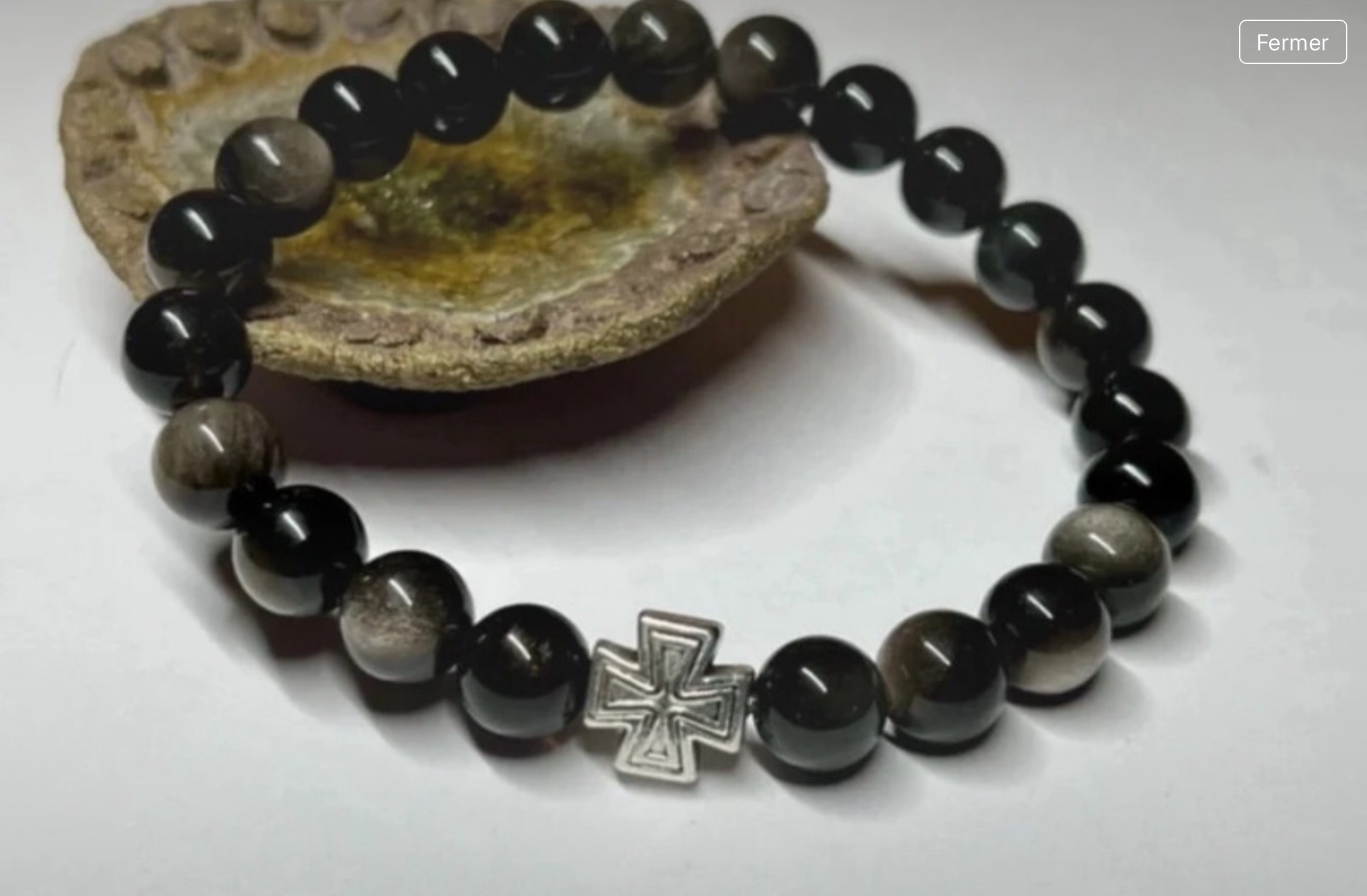 Superbe Qualité de pierre , reflets argentés de l’obsidienne