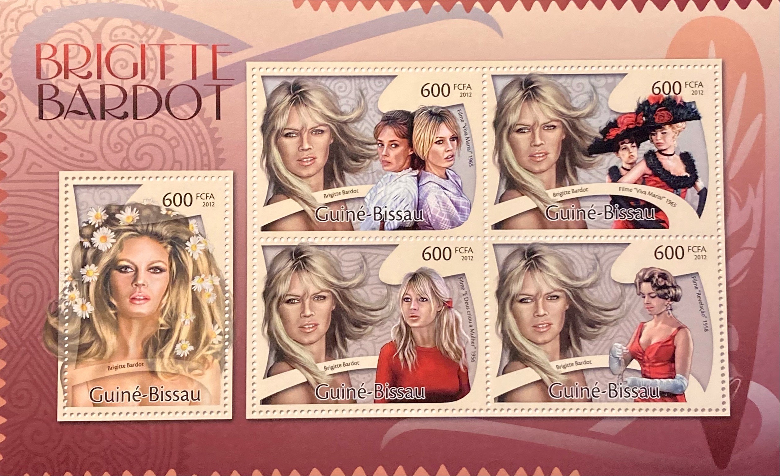 Bloc de 5 timbres de Brigitte Bardot Guinée Bissau 🇬🇼