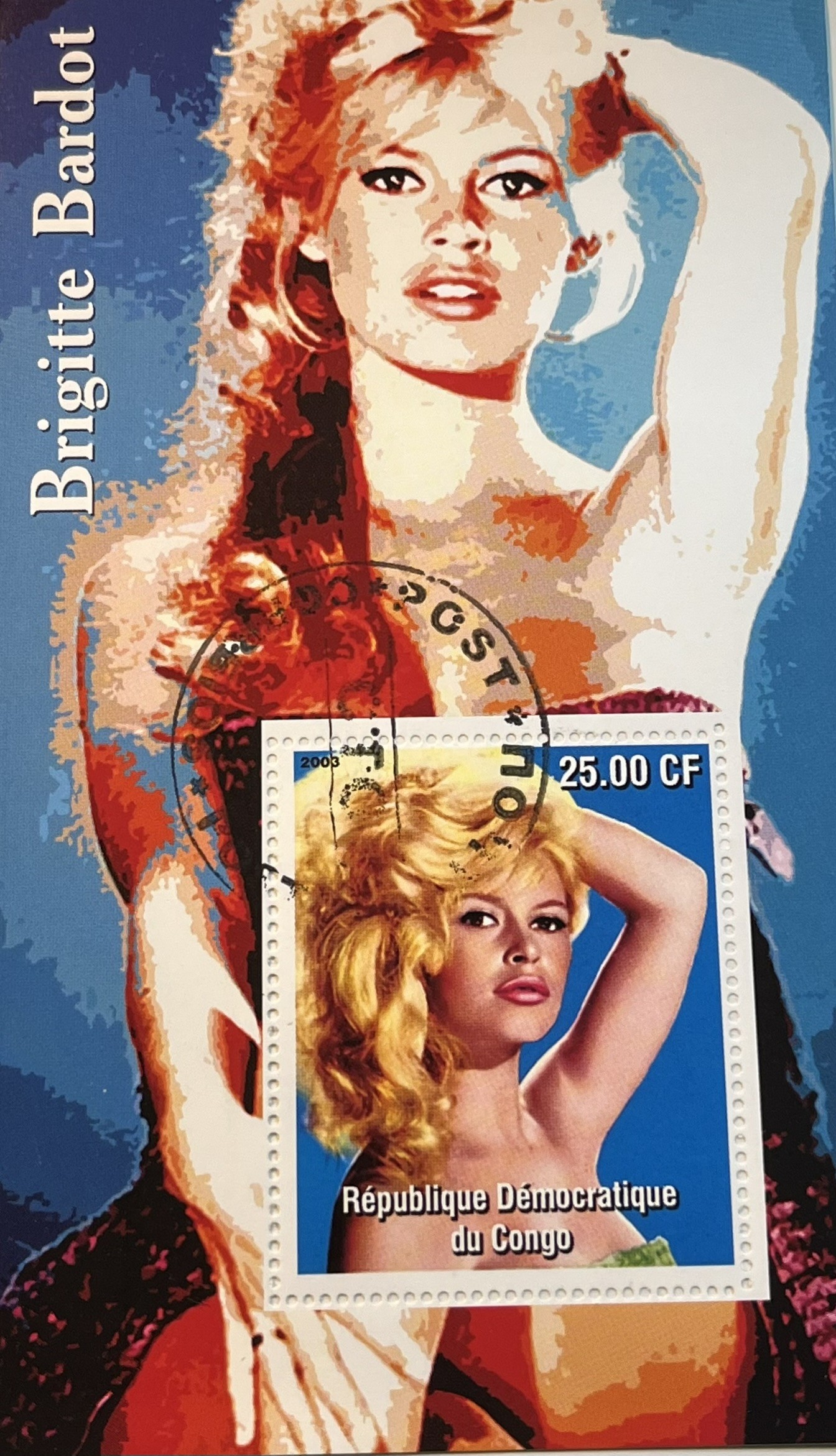 Bloc de timbre de Brigitte Bardot oblitéré République Démocratique du Congo 🇨🇩