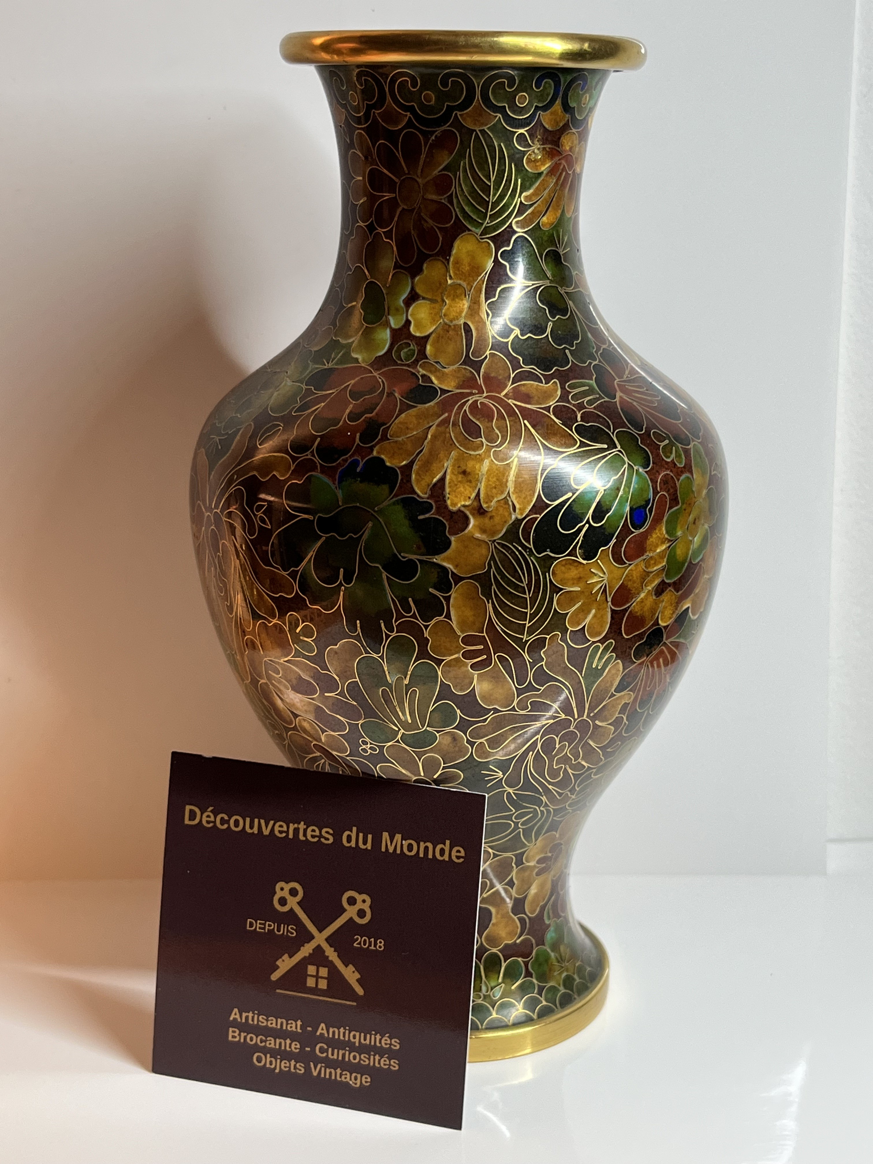 Vase cloisonné décor floral Chine 🇨🇳