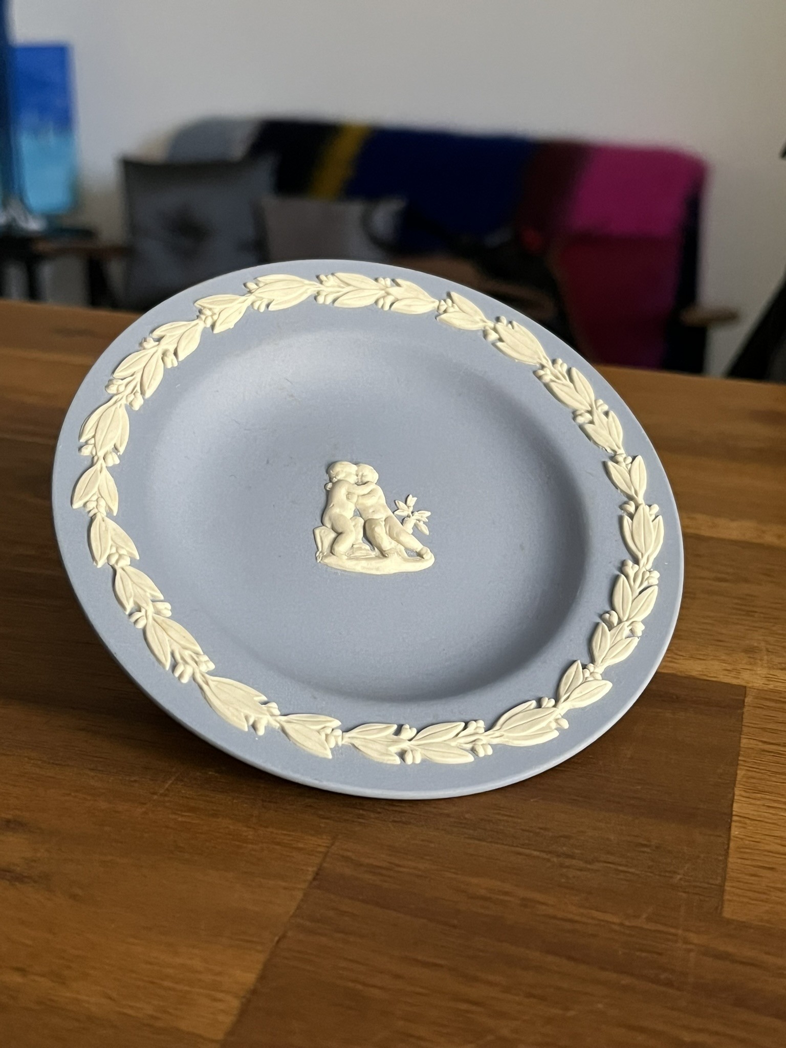 Le porte-objets en jaspe bleu Wedgwood est une pièce vintage fabriquée en Angleterre dans les années 70.