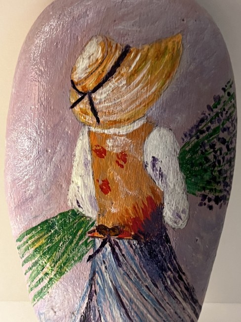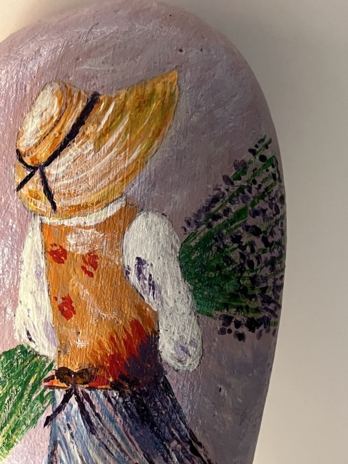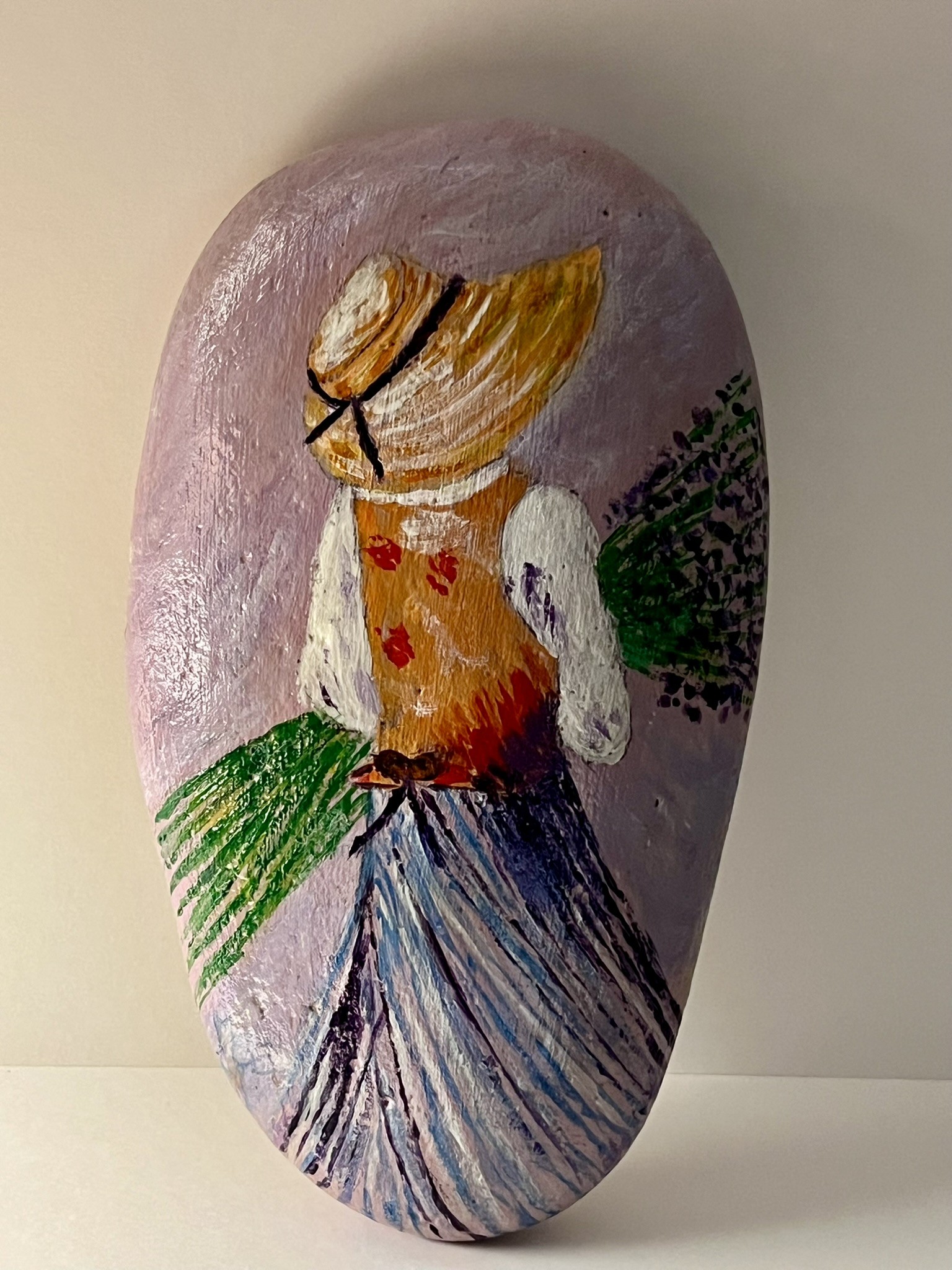 Décor artisanal peint fait main sur vieux Galet de Provence