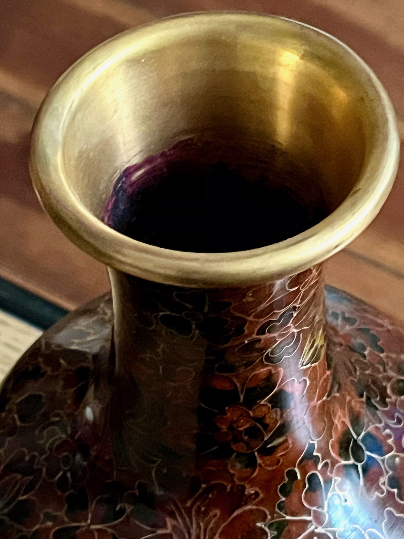Vase cloisonné laiton décor floral Chine 🇨🇳