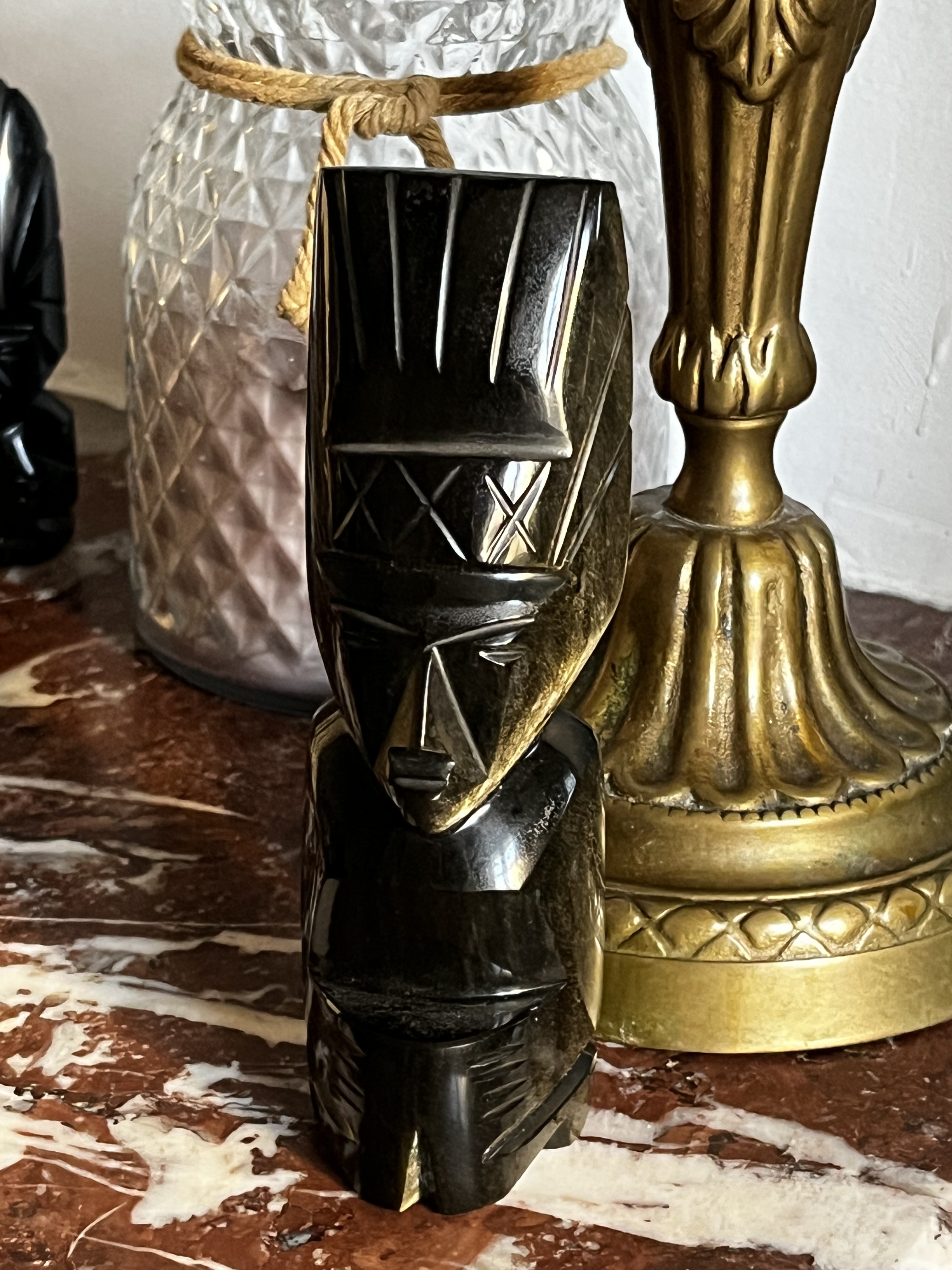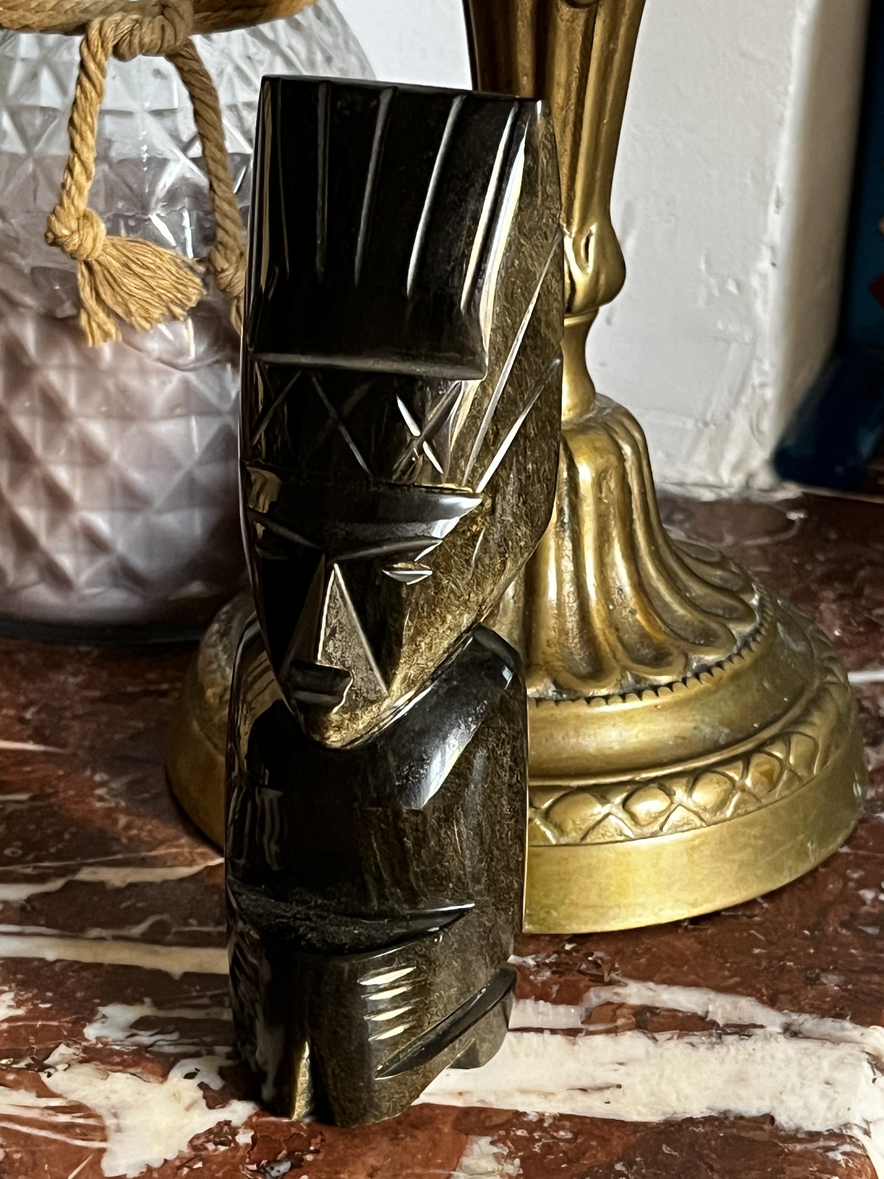 Statuette en obsidienne, reflets verts, dorés
