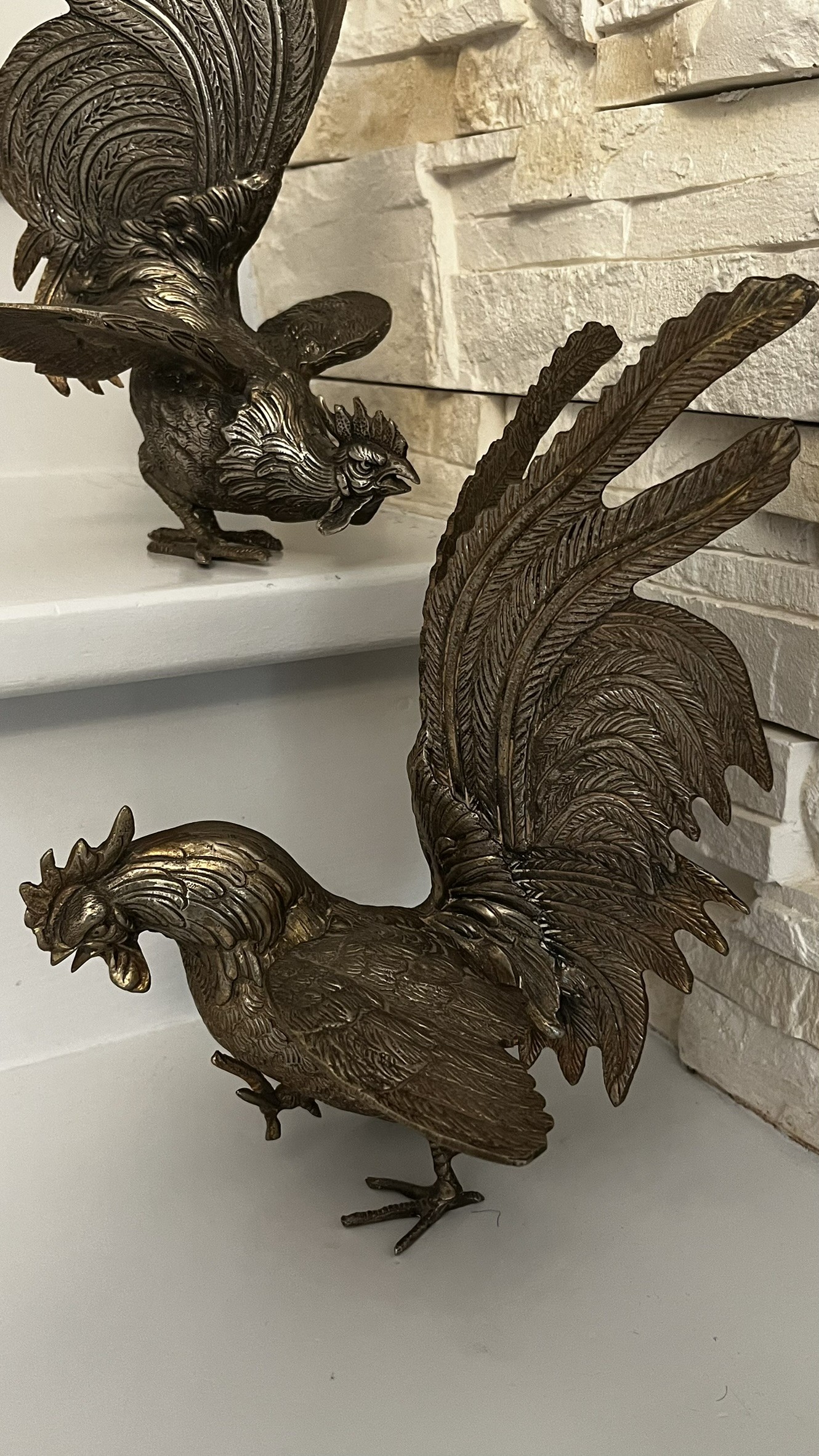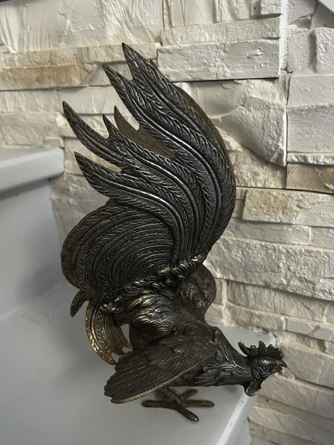 Superbe paire vintage de coqs de combat bronze argenté