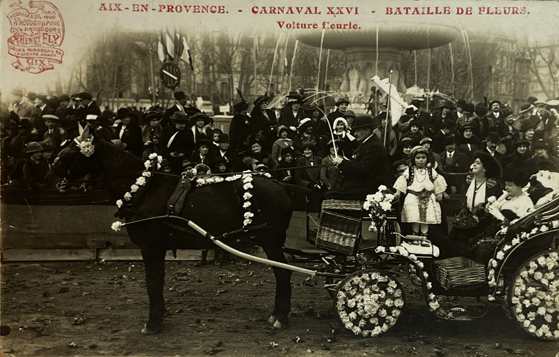 Carte Postale Ancienne Aix En Provence Carnaval XXVI Bataille des Fleurs Attelage Cheval Voiture Fleurie Photo Henry Ely 1914