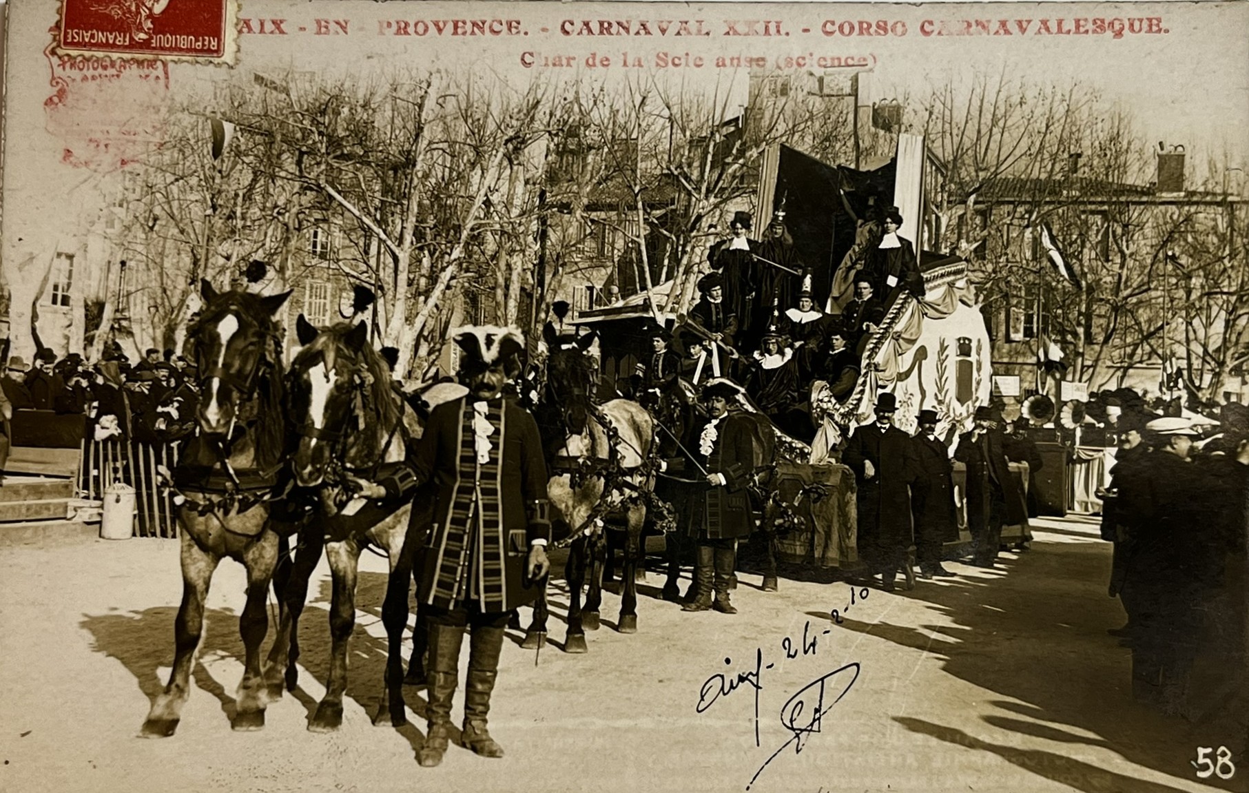 Carte Postale Ancienne Aix En Provence Carnaval XXII Corso Carnavalesque Char de la science Photo Henry Ely 1910