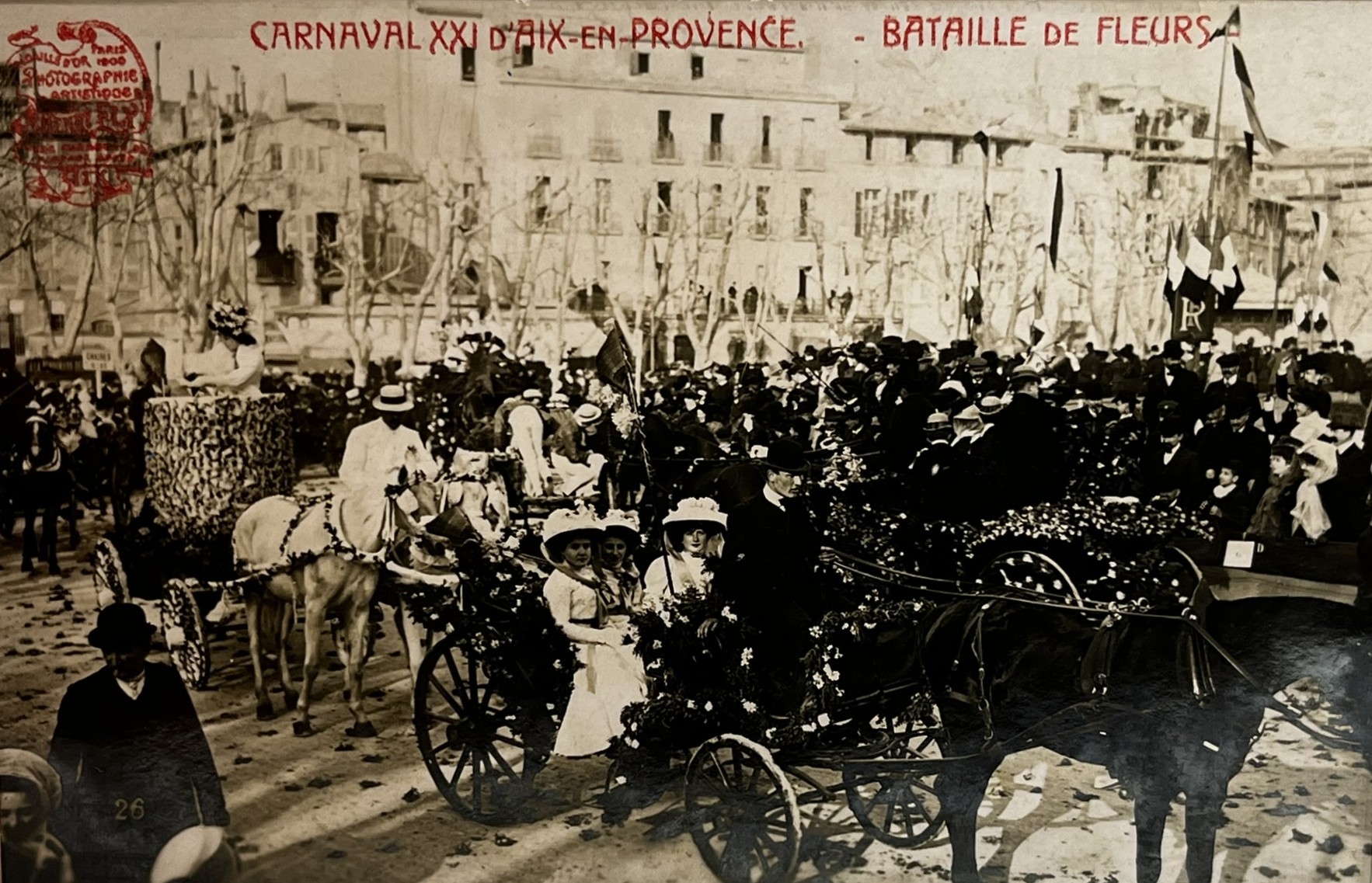 Carte Postale Ancienne Aix En Provence Carnaval XXI Bataille de Fleurs Attelage Chevaux Photo Henry Ely 1909