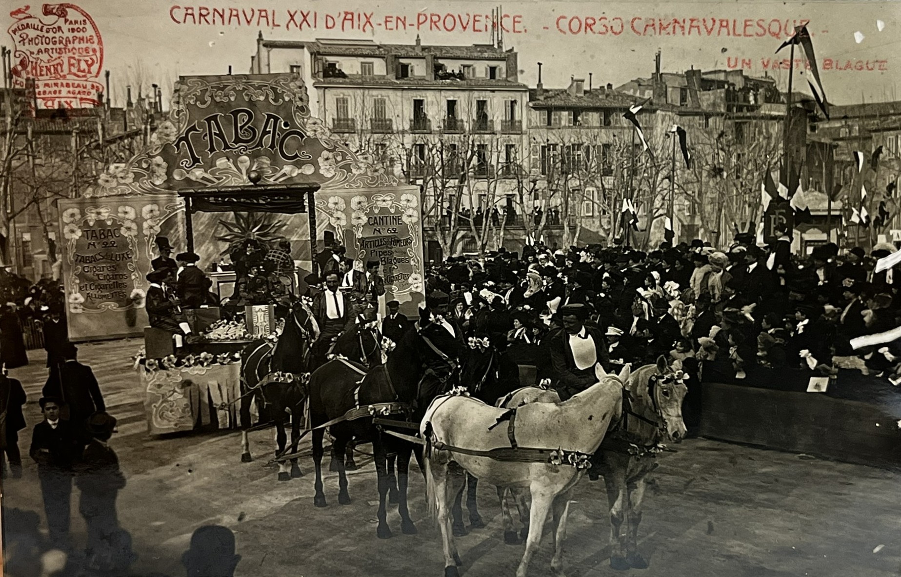 Carte Postale Ancienne Aix En Provence Carnaval XXI Corso Carnavalesque Tabac Attelage Chevaux Photo Henry Ely 1909