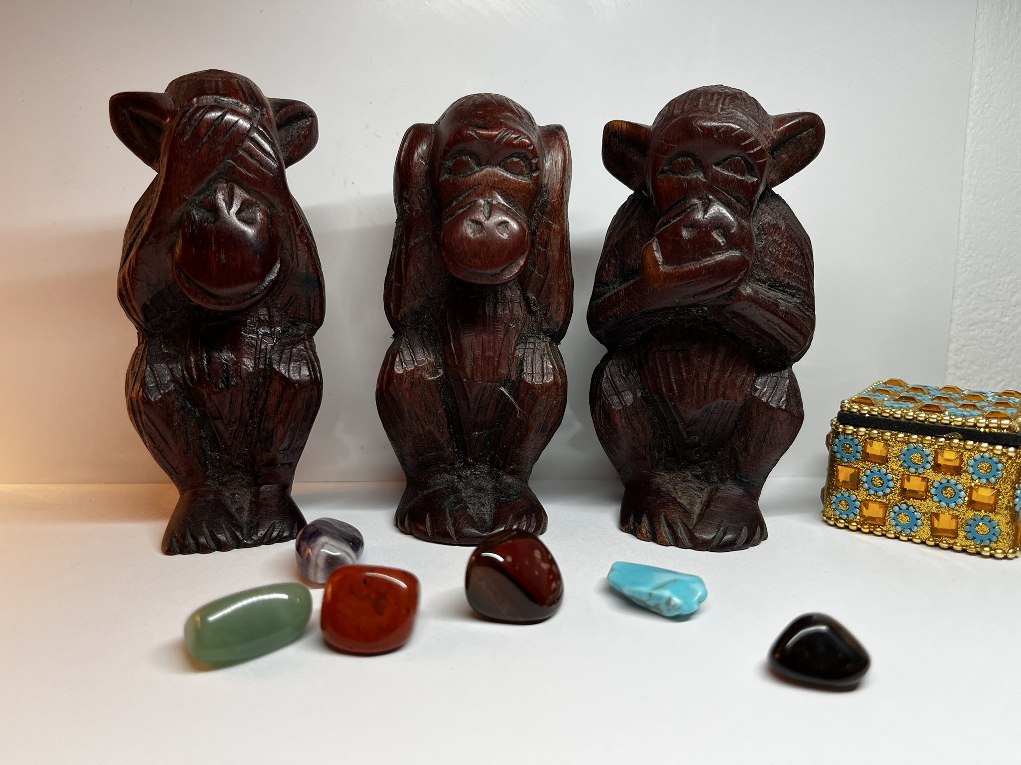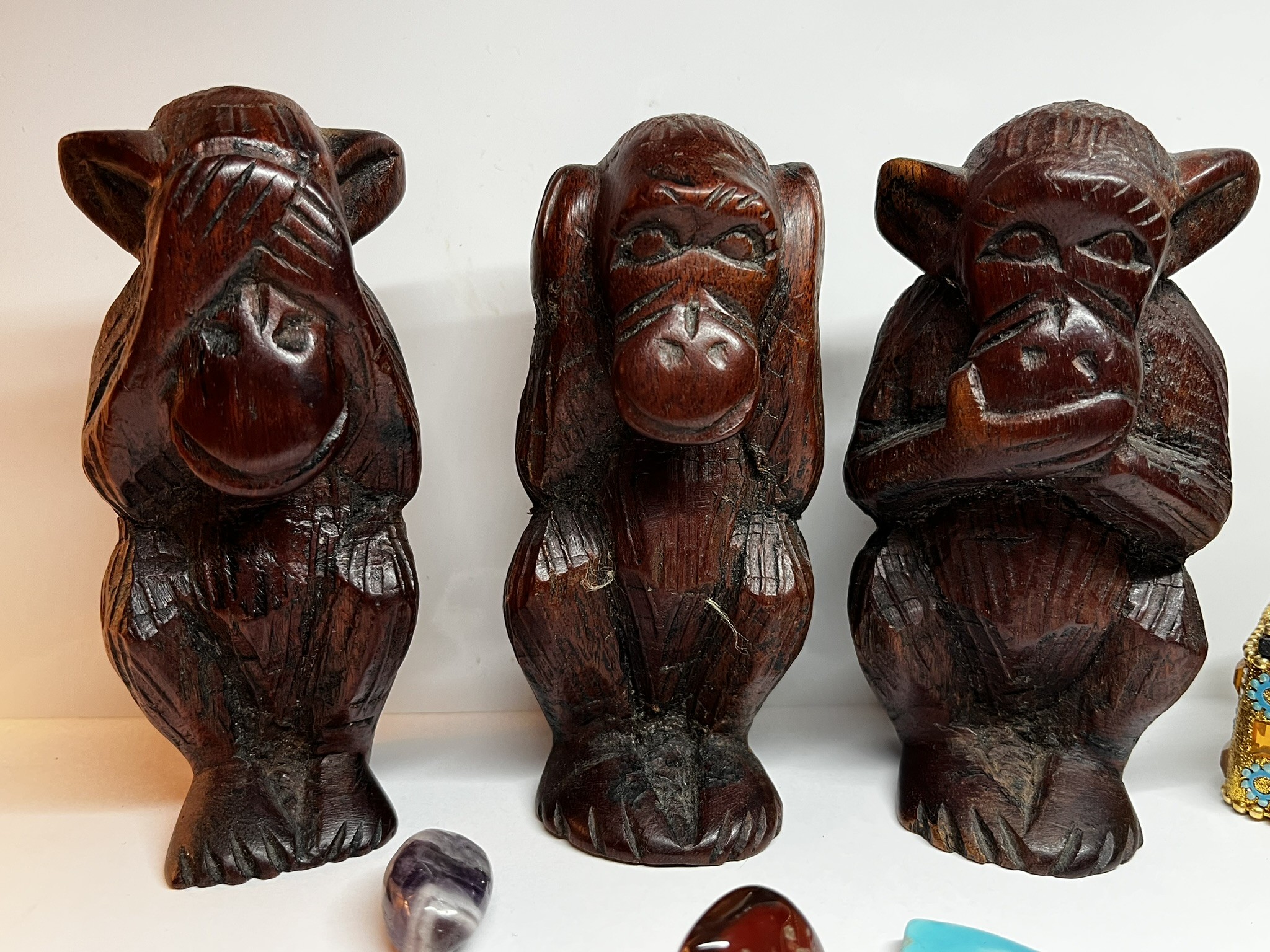 Cet ensemble vintage de trois singes sages, sont une maxime picturale classique.