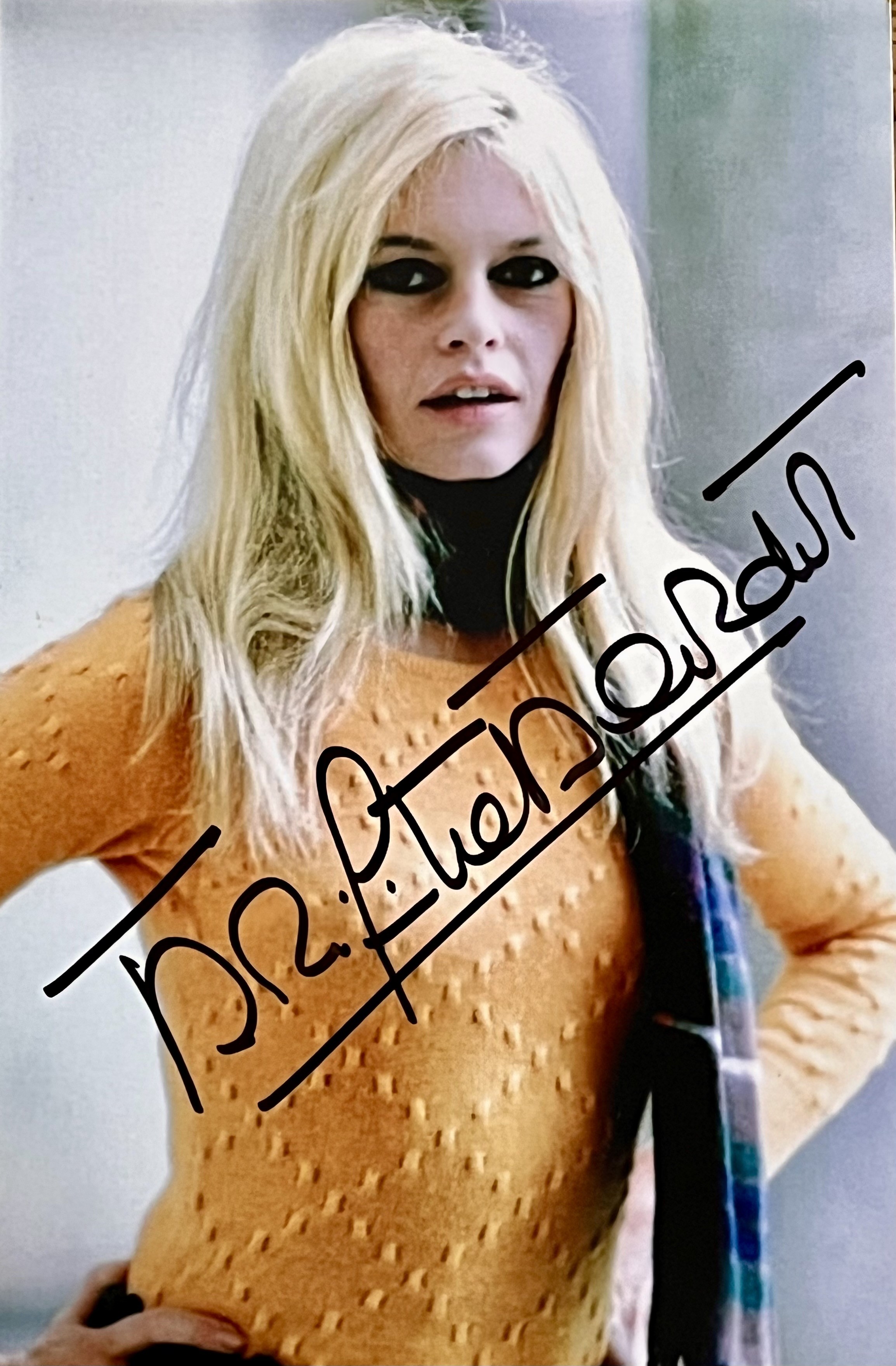 Autographe original, signature au feutre noir par Brigitte Bardot sur la photo 10x15cm