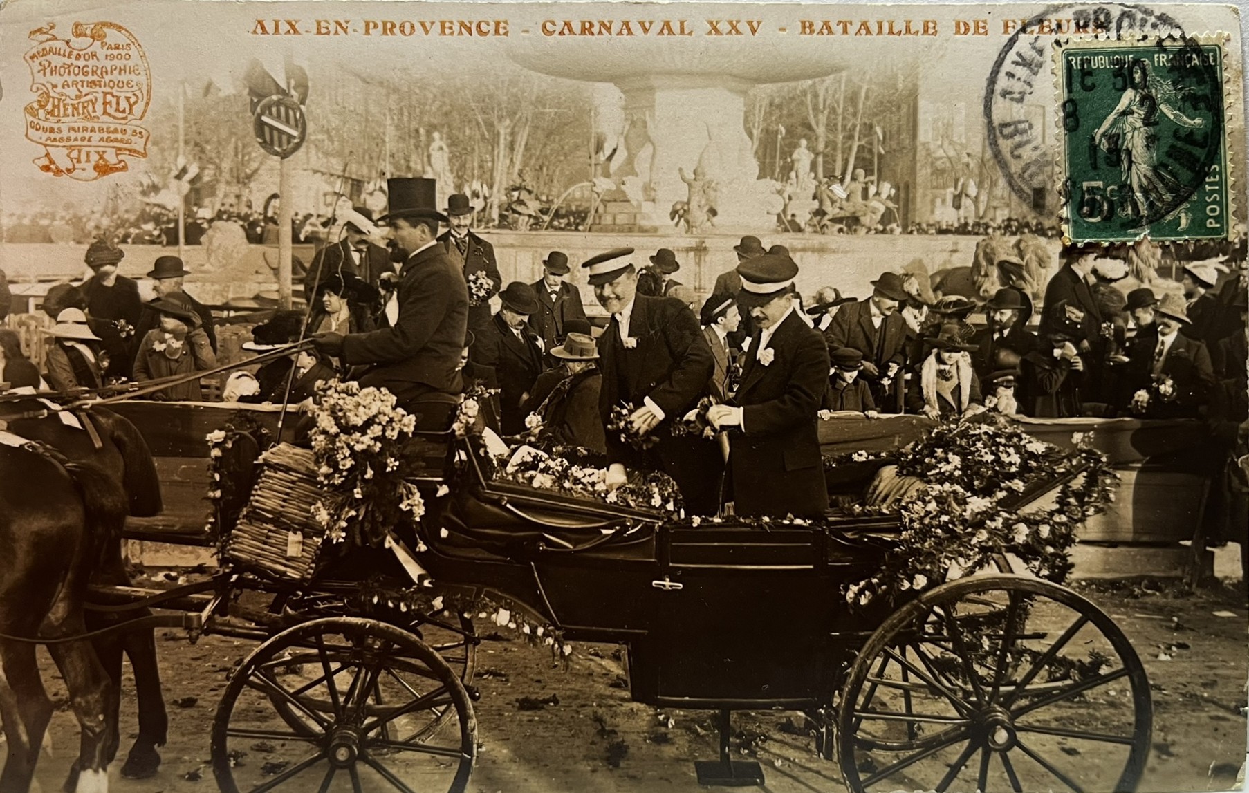 Carte Postale Ancienne Aix En Provence Carnaval XXV Bataille des Fleurs Attelage Voiture Fleurie Photo Henry Ely 1913