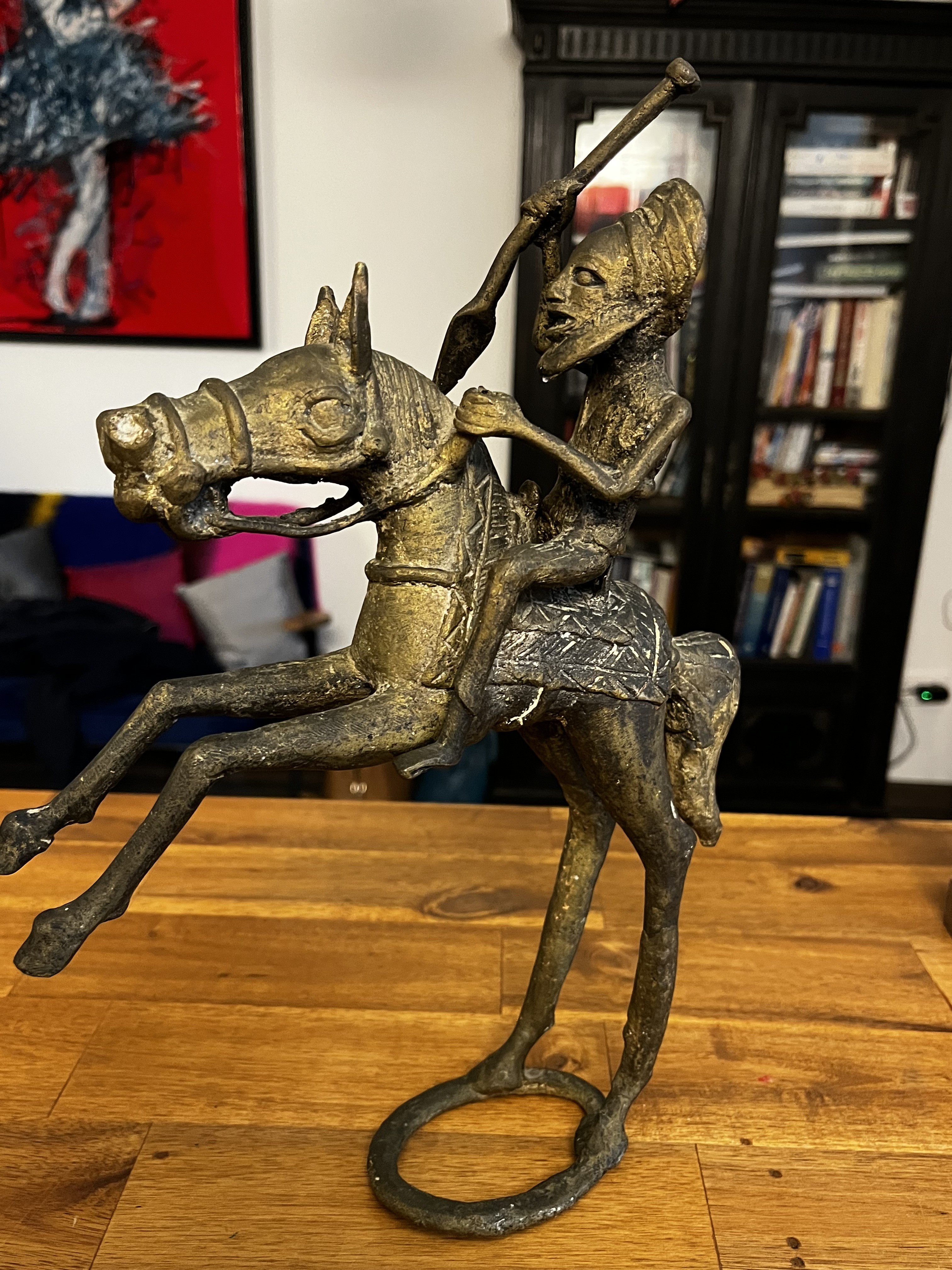 Ce cavalier Bamoun sur un cheval cabré représenterait le roi N'Doya (N’Joya)dans sa victoire sur les Peuls, au XIXe siècle.