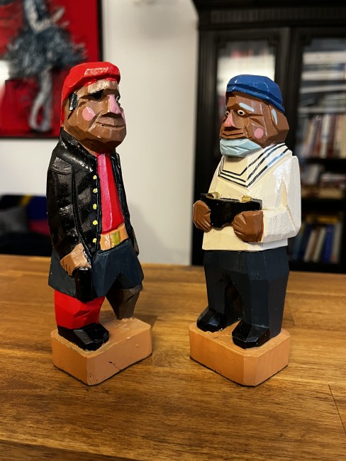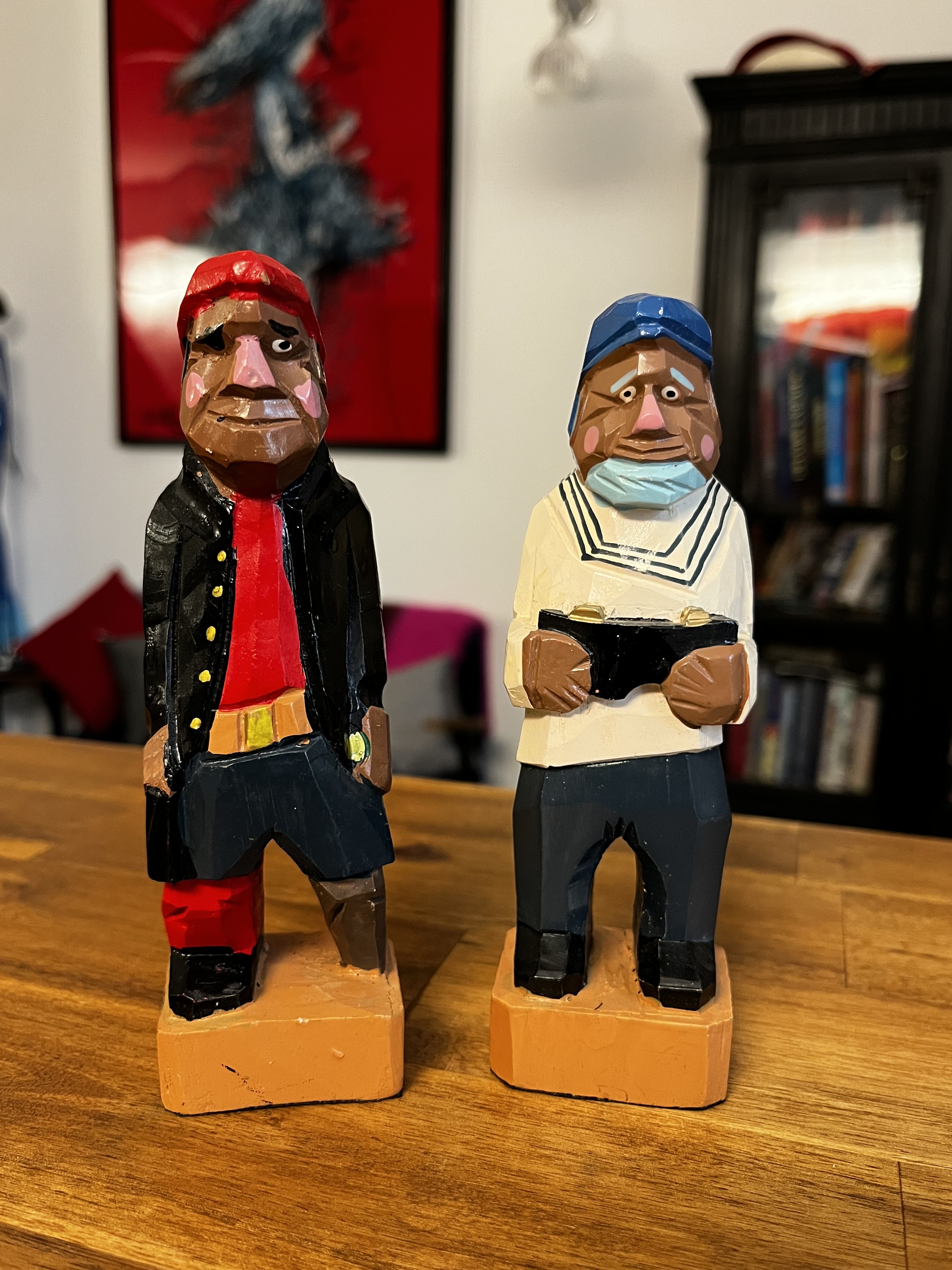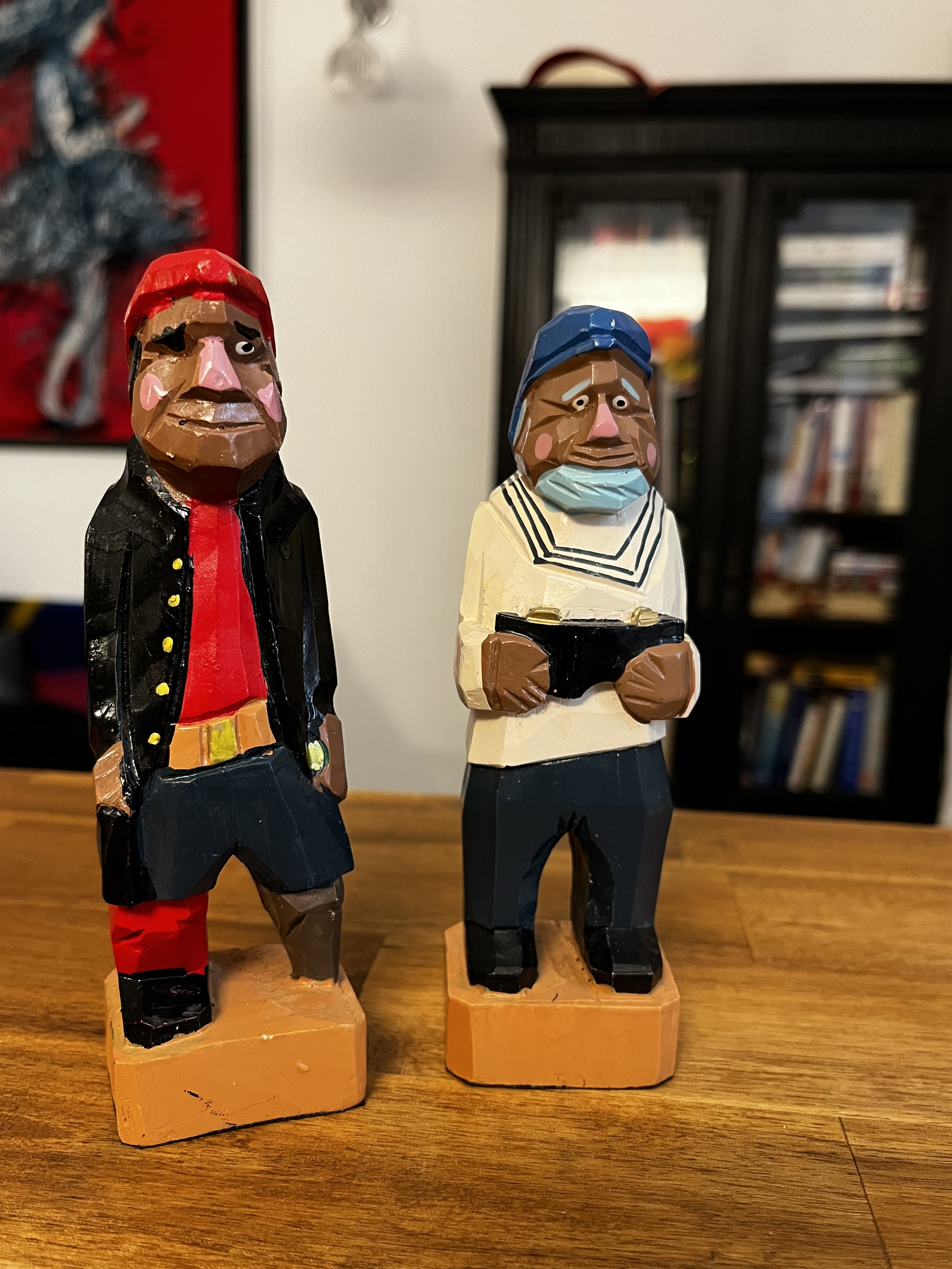 2 Statuettes sculptures en bois Marin et Pirate jambe de bois Pirate Wooden leg