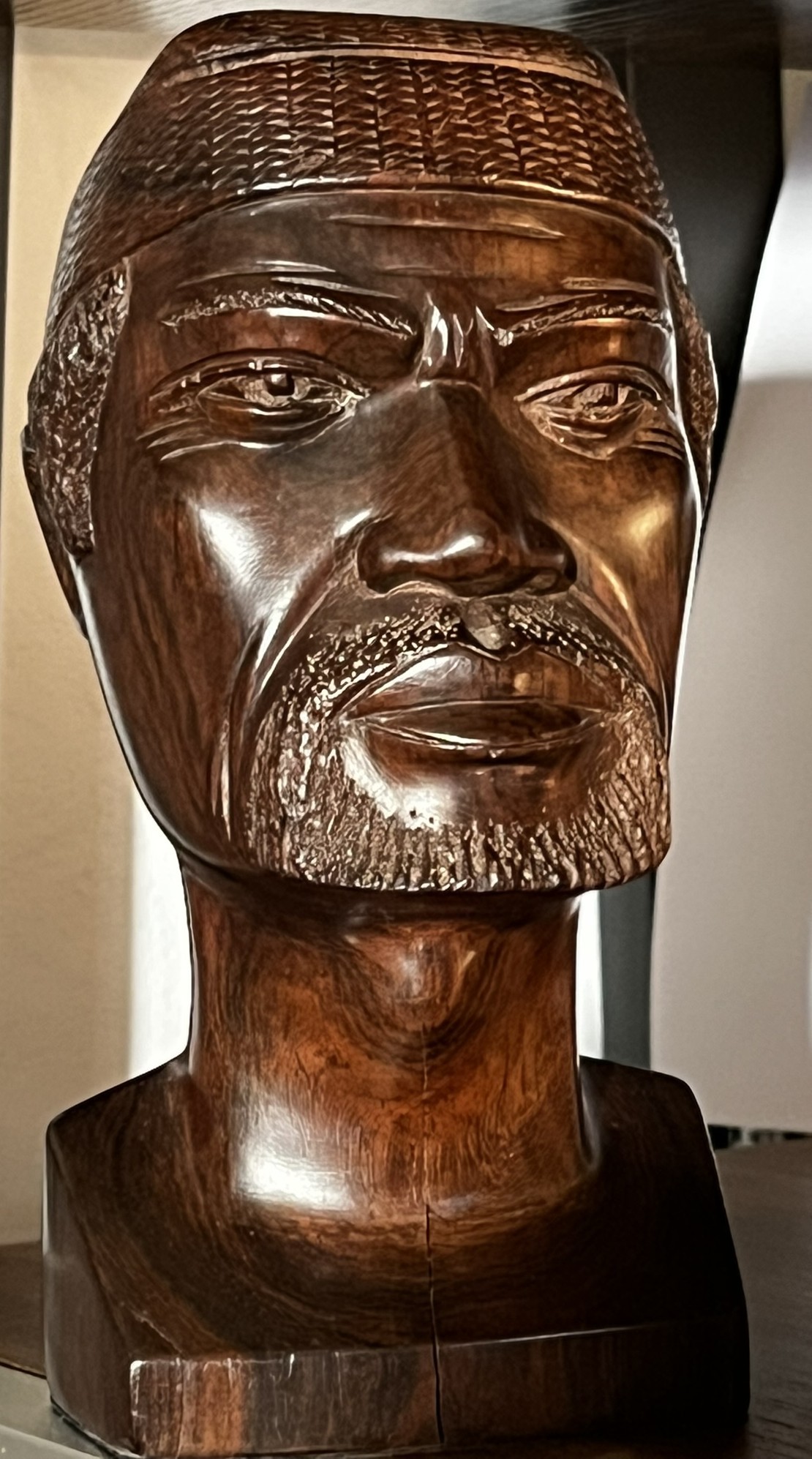Expressivité des visages et travail sur les coiffes impressionnant dans une essence de bois locale particulièrement dense.(Palissandre)