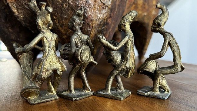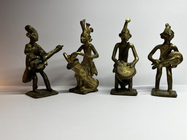 Lot de 4 Figurines en bronze d'art tribal africain vintage, statuettes de musiciens de Côte d'Ivoire