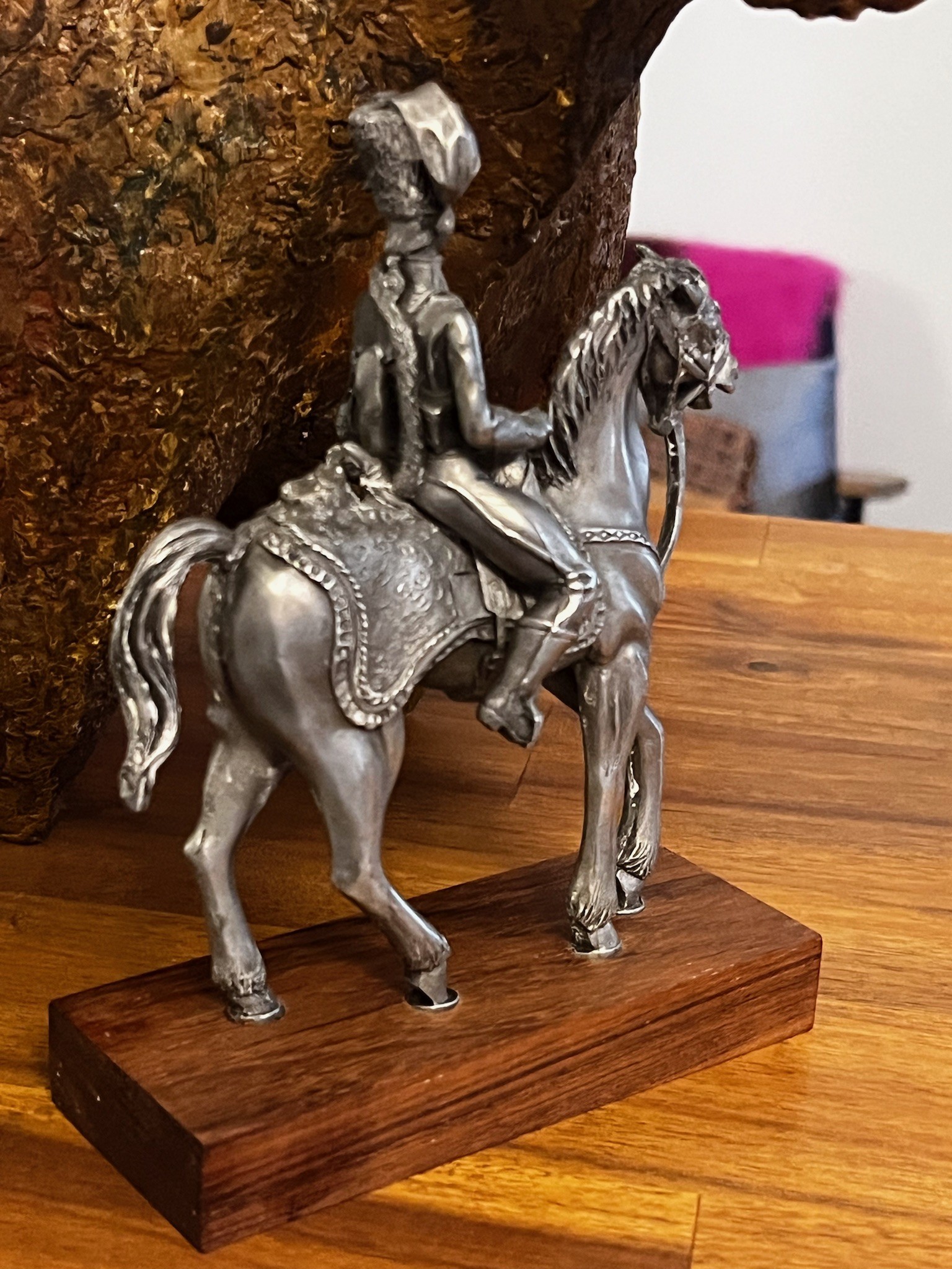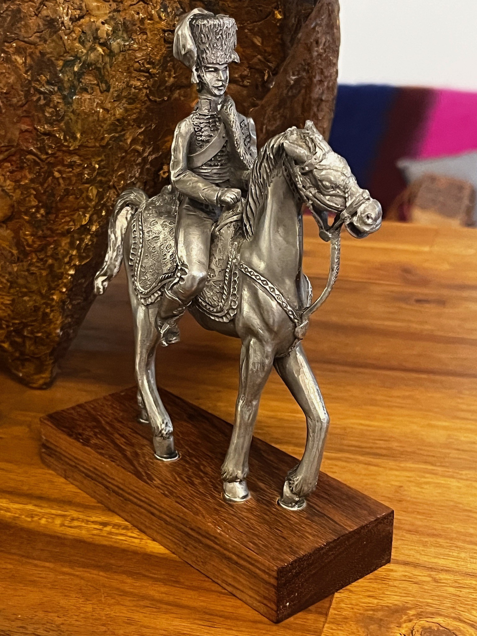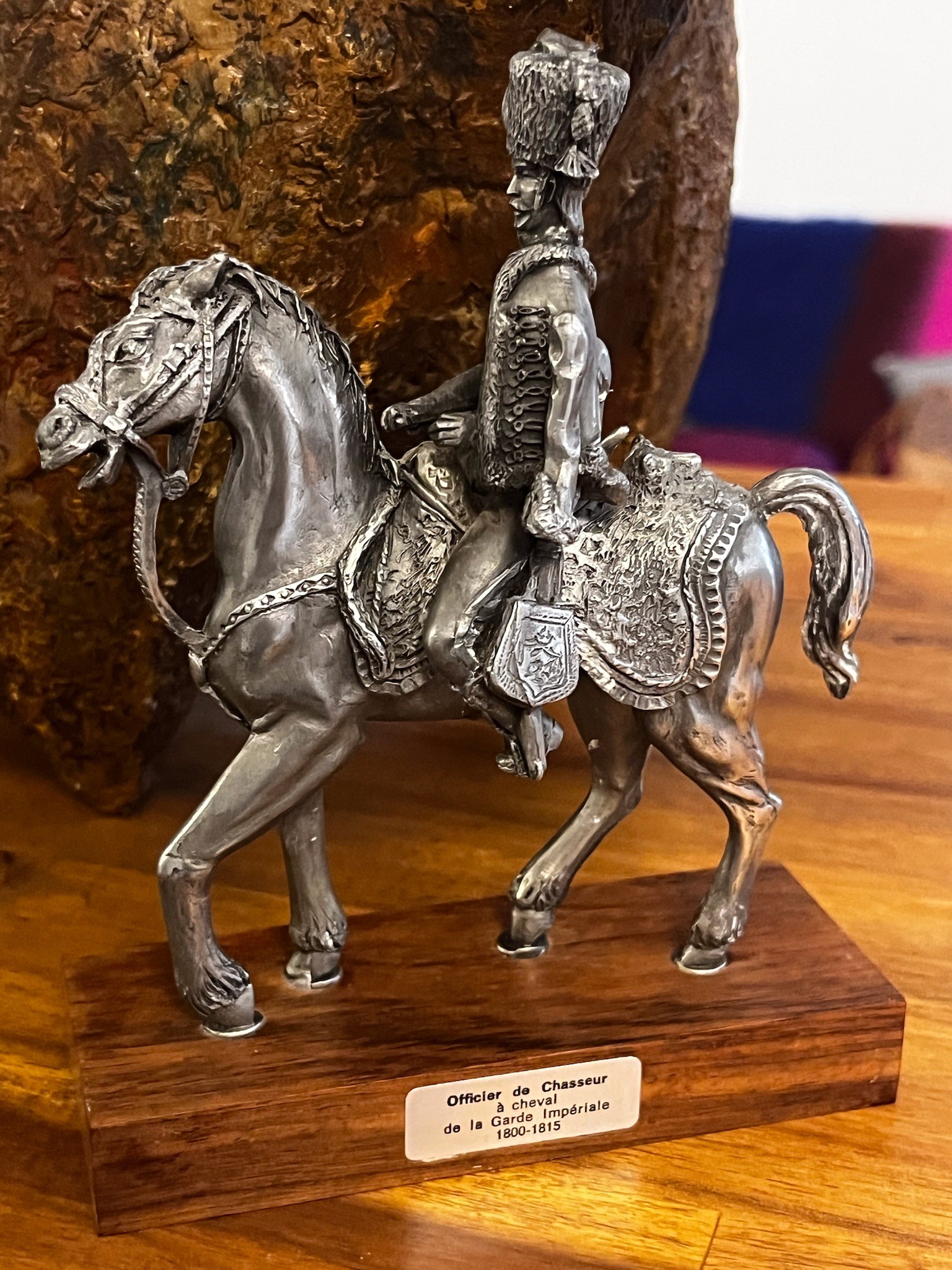 Figurine Empire, en étain ciselée main sur socle bois