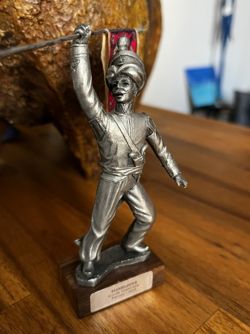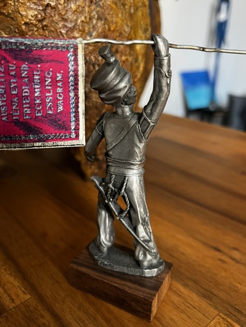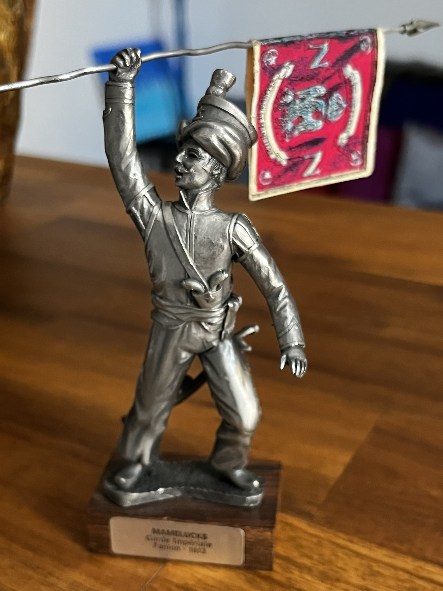 Figurine Empire, en étain ciselée main sur socle bois