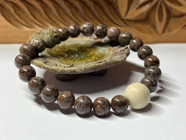 Bracelet en jaspe, pierre de Brac et Bouddha bronze