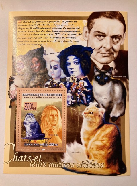 Bloc de timbre Brigitte Bardot chats et leurs maîtres célèbres