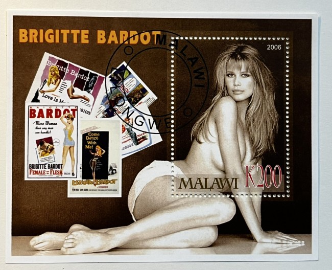 Bloc de timbre de Brigitte Bardot oblitéré Malawi