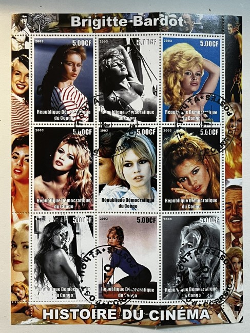 Bloc de timbre de Brigitte Bardot oblitéré République Démocratique du Congo 🇨🇩