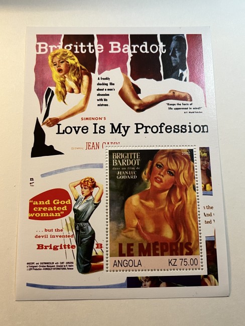 Bloc de timbre de Brigitte Bardot le mépris Angola