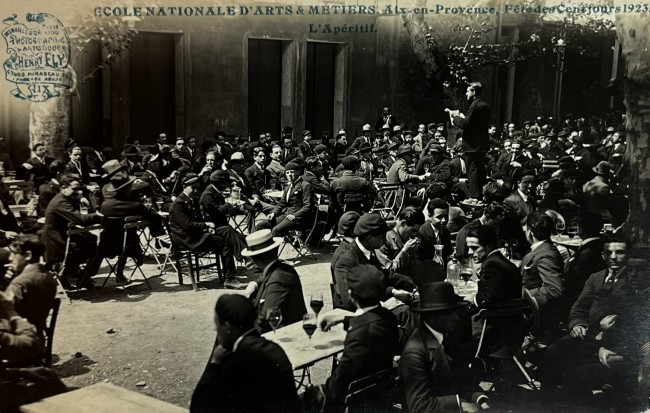 Carte Postale Ancienne Aix En Provence Ecole Nationale D'Arts et Métiers Fête des 100 jours L'Apéritif Photo Henry Ely 1923