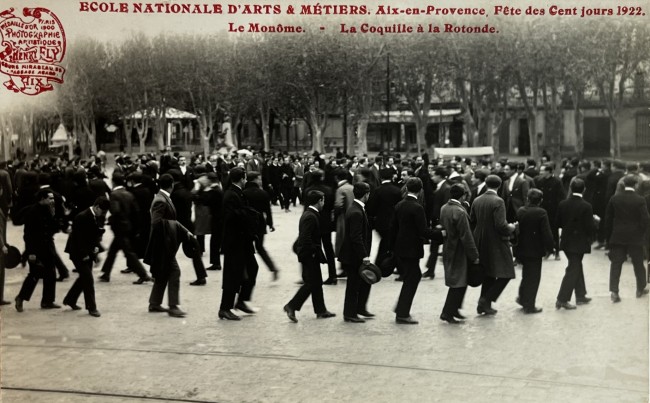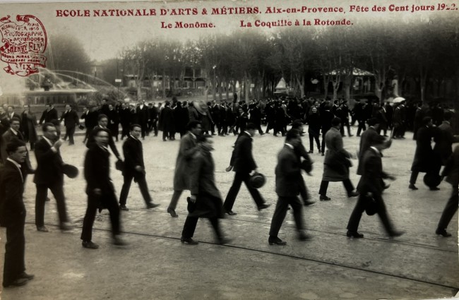 Carte Postale Ancienne Aix En Provence Ecole Nationale D'Arts et Métiers Fête des 100 jours Le Monôme Coquille à la Rotonde Photo Henry Ely 1922
