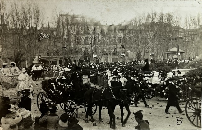 Carte Postale Ancienne Aix En Provence Carnaval XX Corso Carnavalesque Attelage Rotonde Bataille de Fleurs Photo Henry Ely 1908