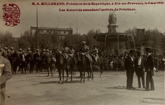 Carte Postale Ancienne Aix En Provence M. Millerand Président de la République Les autorités à cheval Fontaine Monumentale La Rotonde Photo Henry Ely 1922